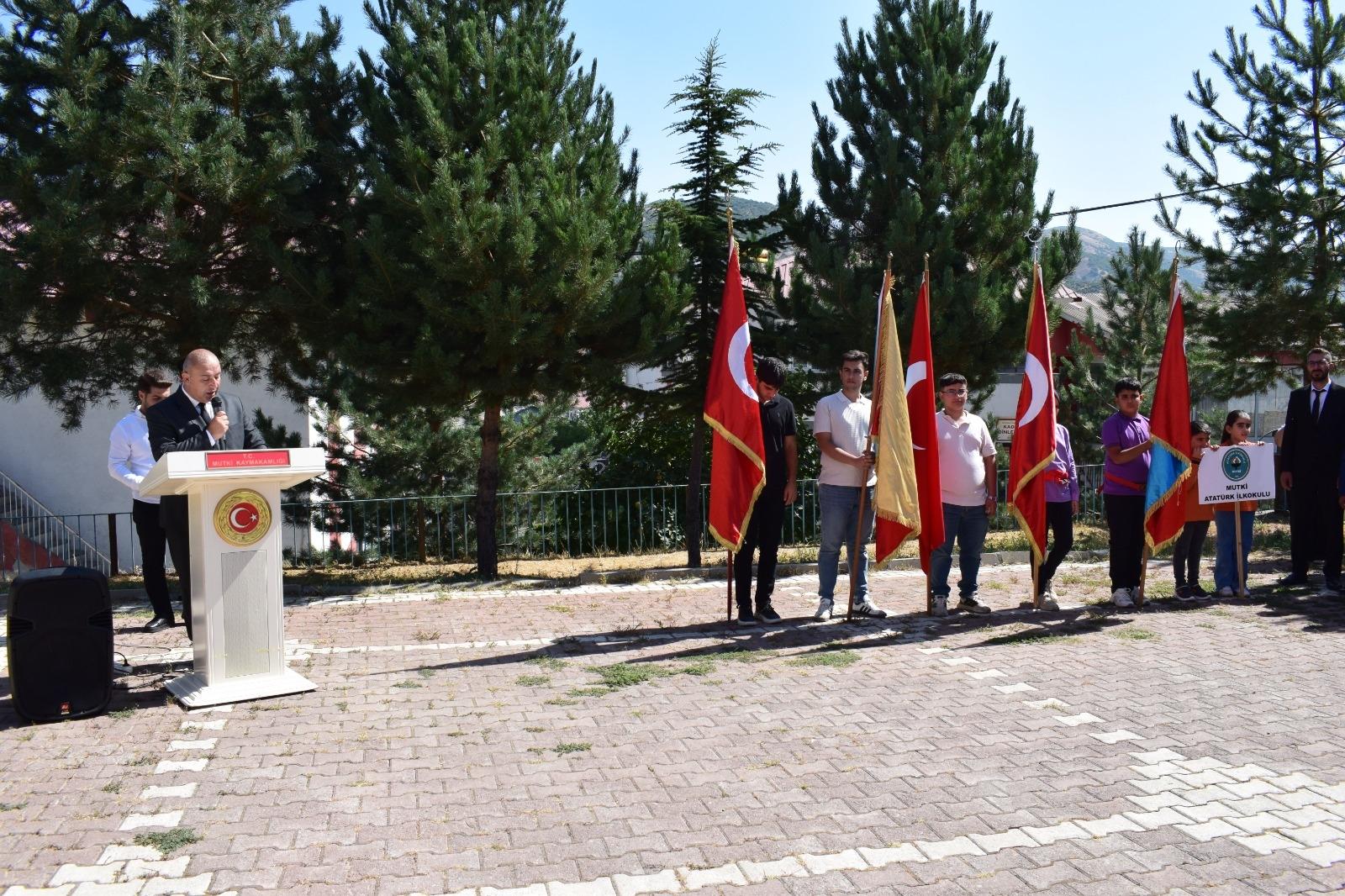 "30 Ağustos Zafer Bayramı" Kaymakamımız Sn. Onur YILMAZER, Belediye Başkanımız Sn. Vahdettin BARLAK, Cumhuriyet Savcımız Sn. Hakkı MAVİŞ, İlçe Milli Eğitimi Müdürümüz Sn. Murat BİÇER , Kurum Amirlerimiz ve Mutki halkının katılımıyla kutlandı.